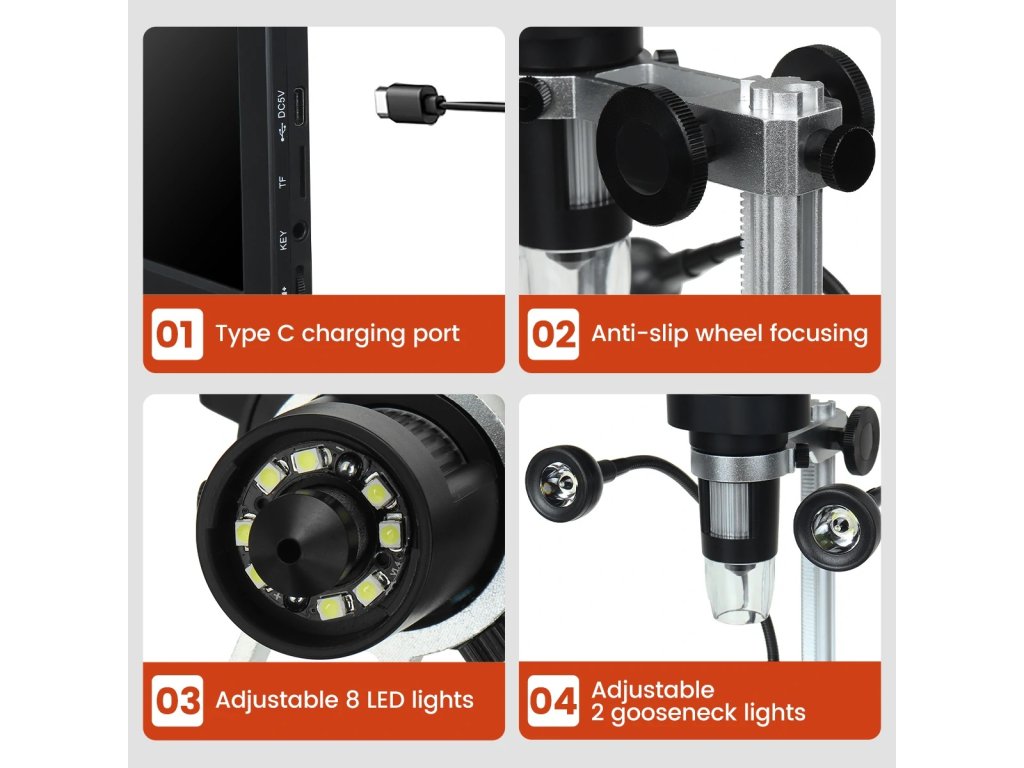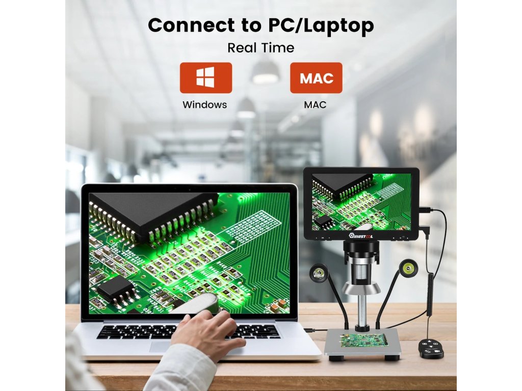Vysoké zvětšení až 1200× – umožňuje detailní prohlížení malých objektů, jako jsou plošné spoje či drobné součástky.